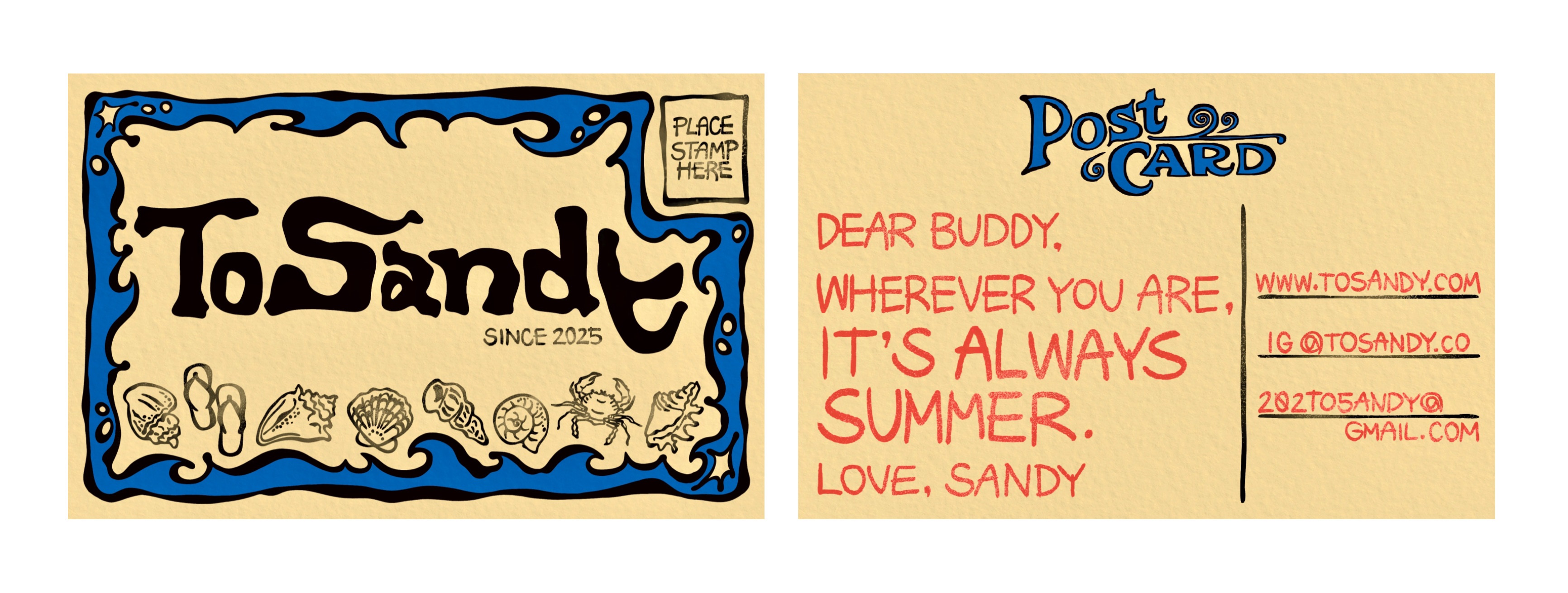 ToSandy는 ‘To. Sandy’ 에서 온 이름으로, 고객이 Sandy에게 편지를 보내는 형식을 모티브로 한 브랜드입니다.